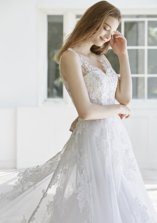 花嫁の纏うウェディングドレスは誰しもの憧れ真っ白だからこそデザインにこだわり王道のデザインから人気のデザインまで、さまざまな種類・ラインのドレスを取り揃えております。
