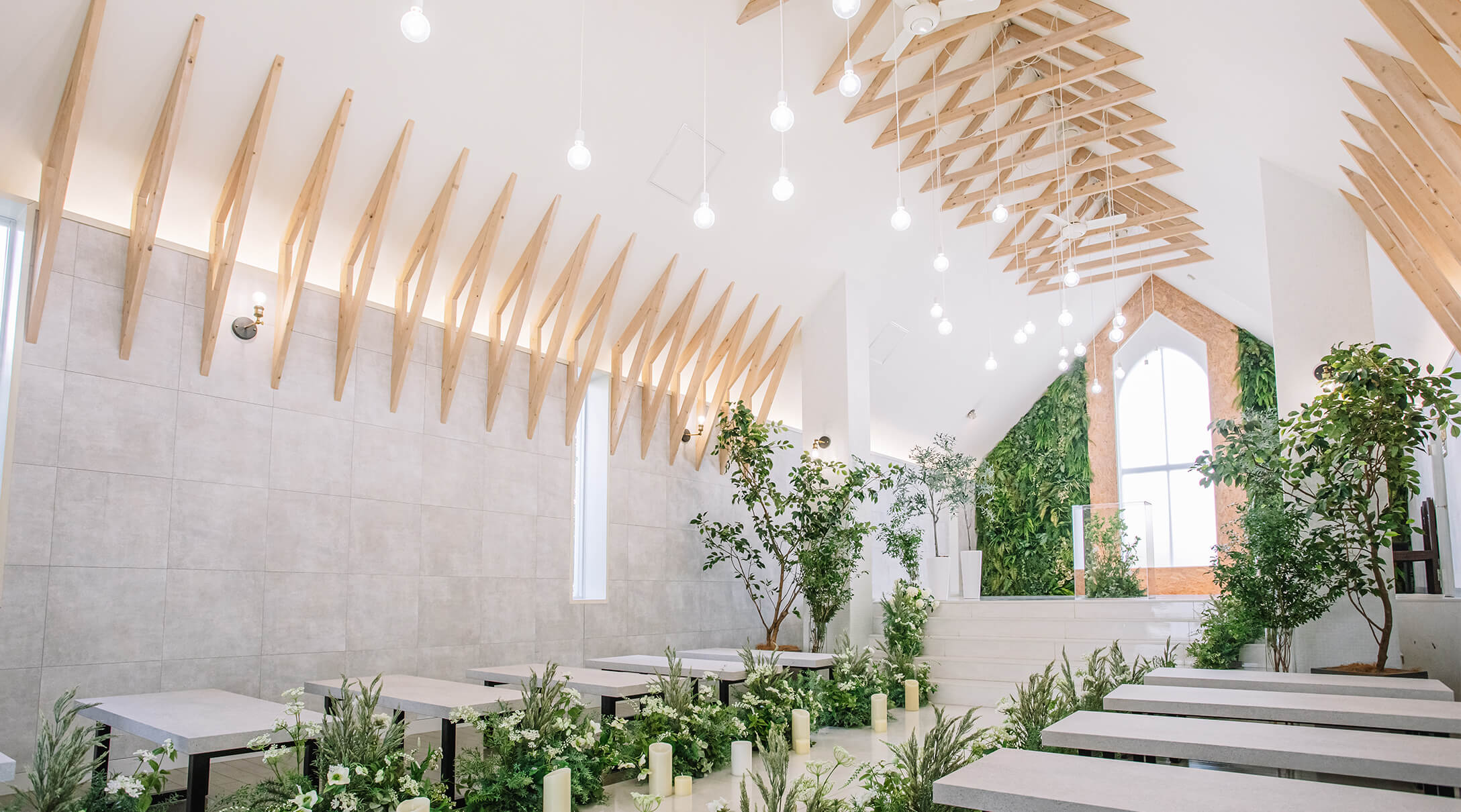 森の中にある癒しのチャペル。みどりと自然光が溢れる明るい空間で、あたたかな