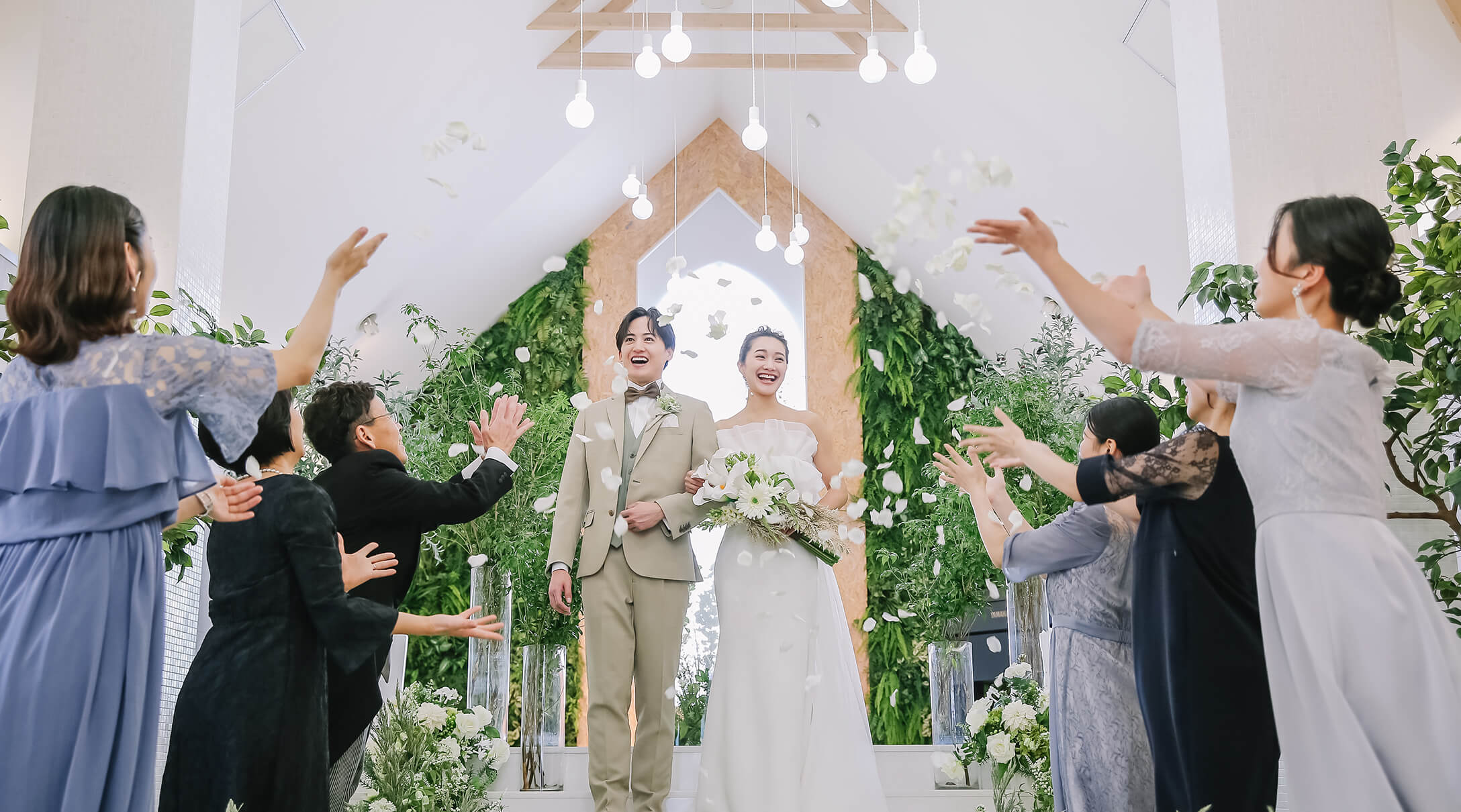 チャペル挙式後はたいせつな家族や友だちと過ごすおもてなしの時間。