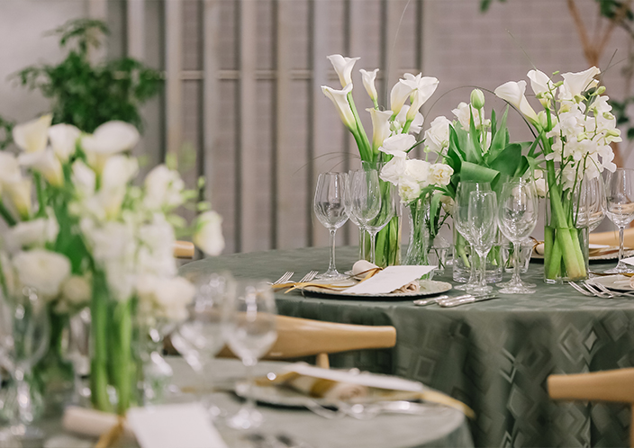 テーブルのレイアウトも、会場内の雰囲気も、おふたりのこだわりでアレンジできます。