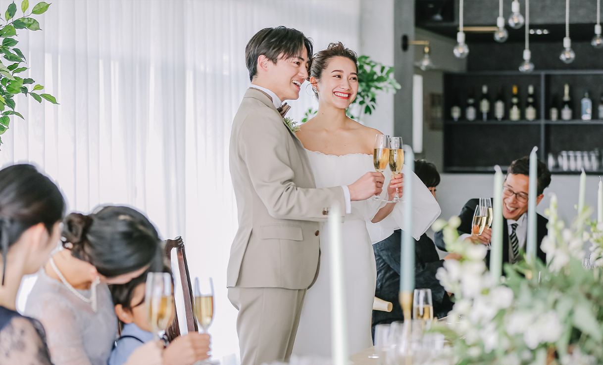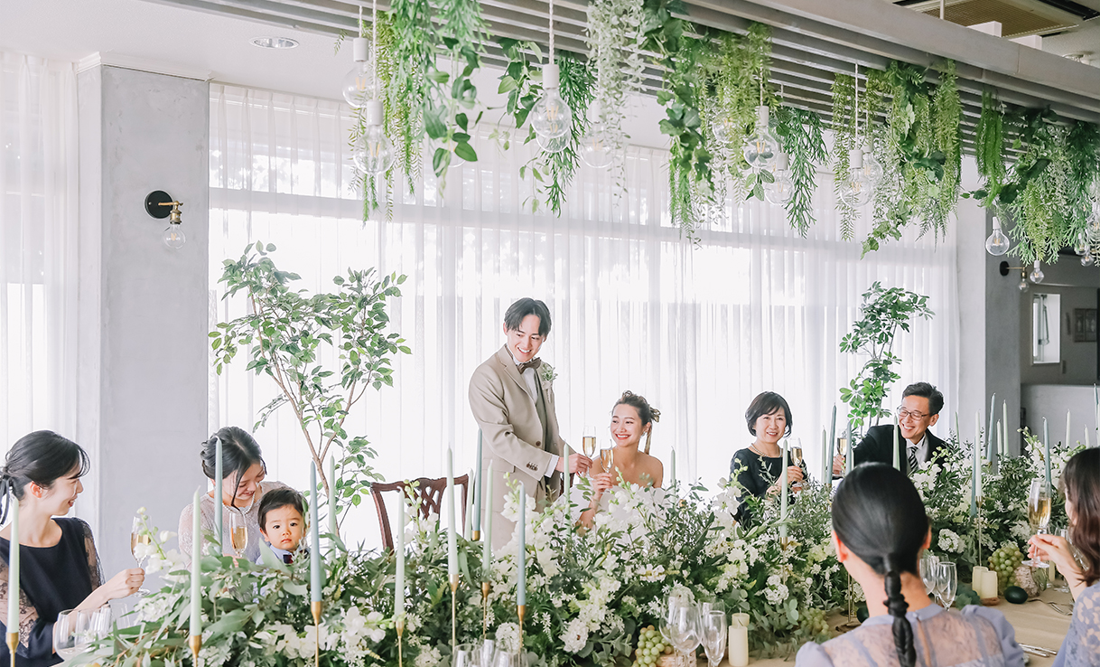 チャペル挙式後はたいせつな家族や友だちと過ごすおもてなしの時間。