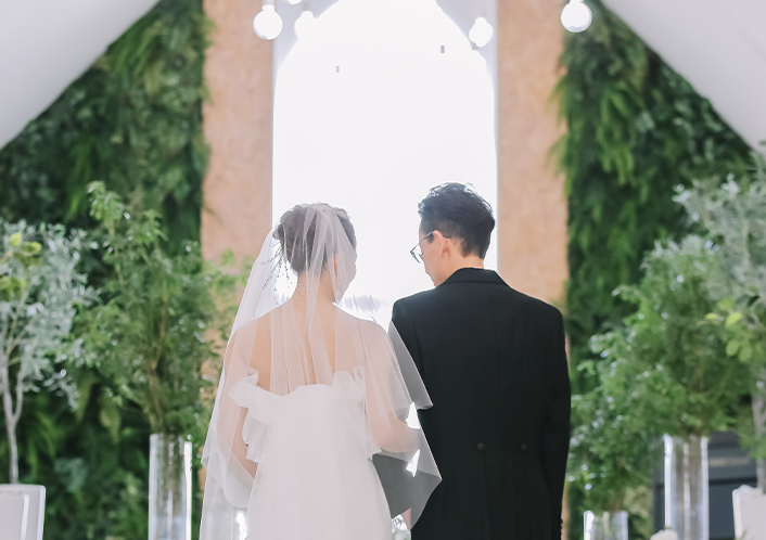 道でありこれから始まるおふたりの未来。ご家族やご友人、たいせつな人たちが見守る中で、一歩一歩ゆっくりと歩いていただきます。